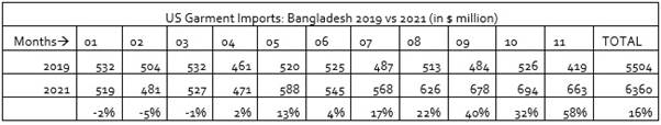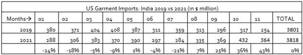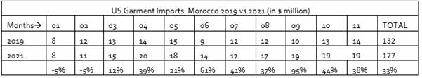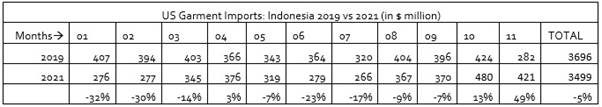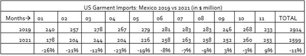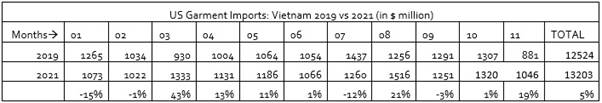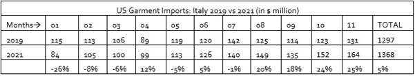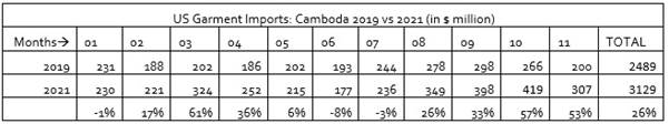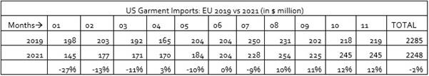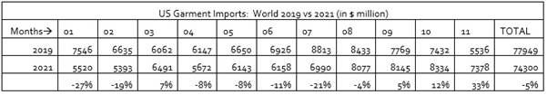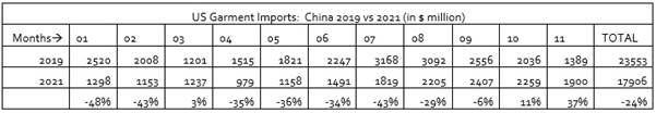 2021 年 11 月终于结束了美国历史上最大的进口下降。8 月开始的复苏现已完成。2021年下半年成功服装出口国均呈现增长态势